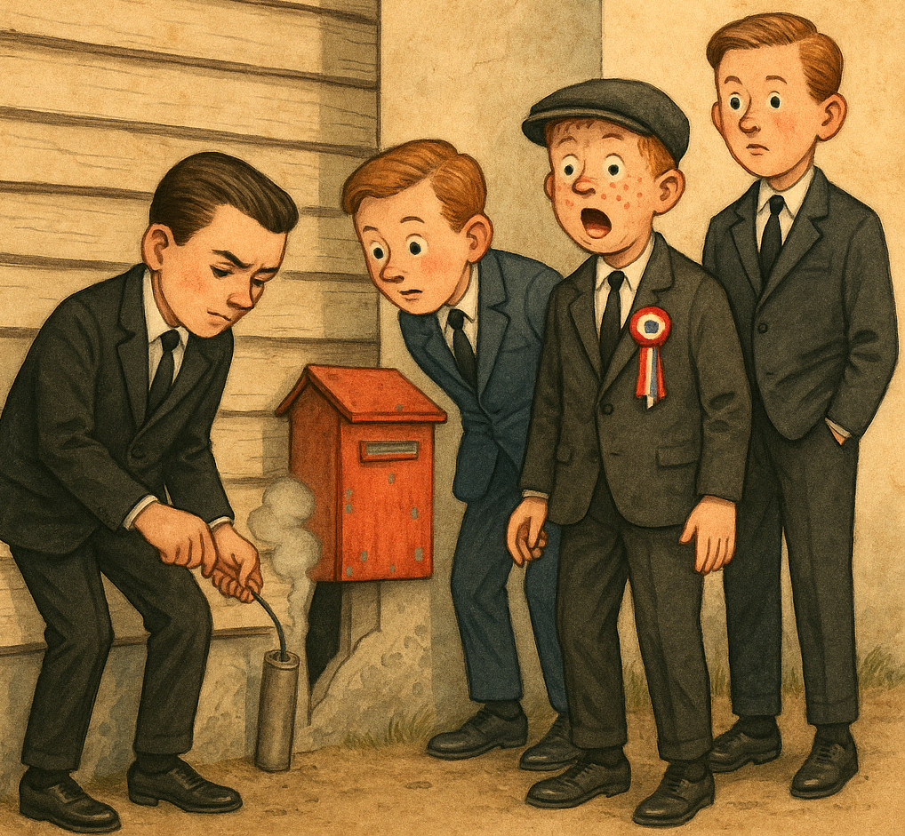 verden og gjøre livet surt for dem som var glad i postkassene sine. De var klar til action, de var hjemmefronten anno 1966. I lommene deres lå sprengstoffet, røde kinaputter og Nitedals fyrstikker. Med unntak av Leffien, han hadde nemlig en overraskelse til dem dette året. Han hadde fått kjemisett til bursdagen, og var blitt interessert i ulike kjemiske sammensettinger. Uheldigvis hadde amatørpyro-teknikeren fått kunnskap om diverse nitratforbindelser, og i all hemmelighet hadde han mekket en hjemmelaget bombe. Det bulet under jakken til Leffien, og gjengen lurte på hva han hadde skjult der.